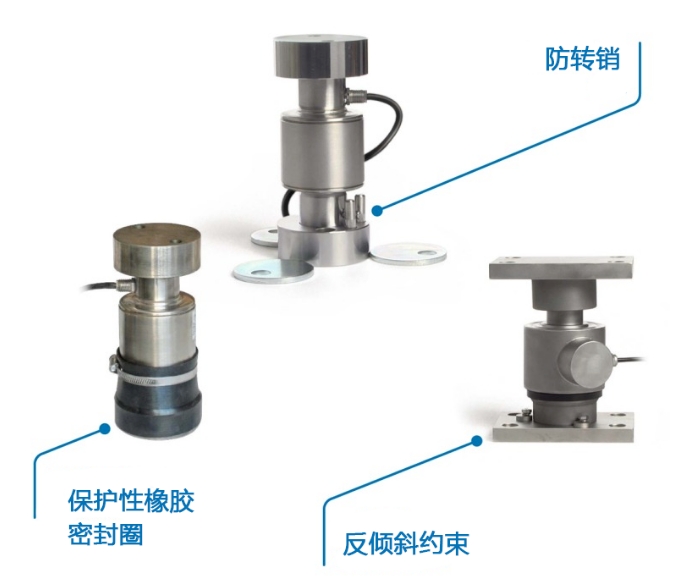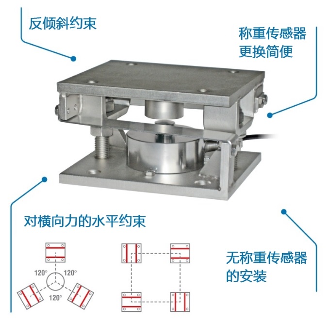所有用于压缩式称重传感器的安装件还能起到防倾斜约束和抗侧向力的作用,确保结构的稳定性,保护称重传感器免受潜在的破坏性应力。 |
