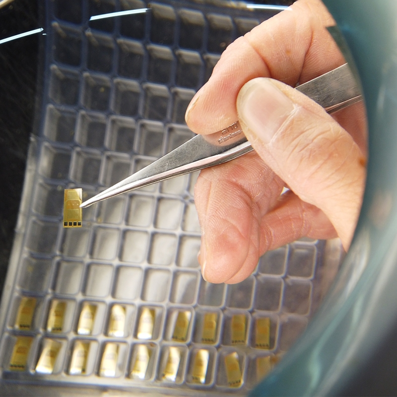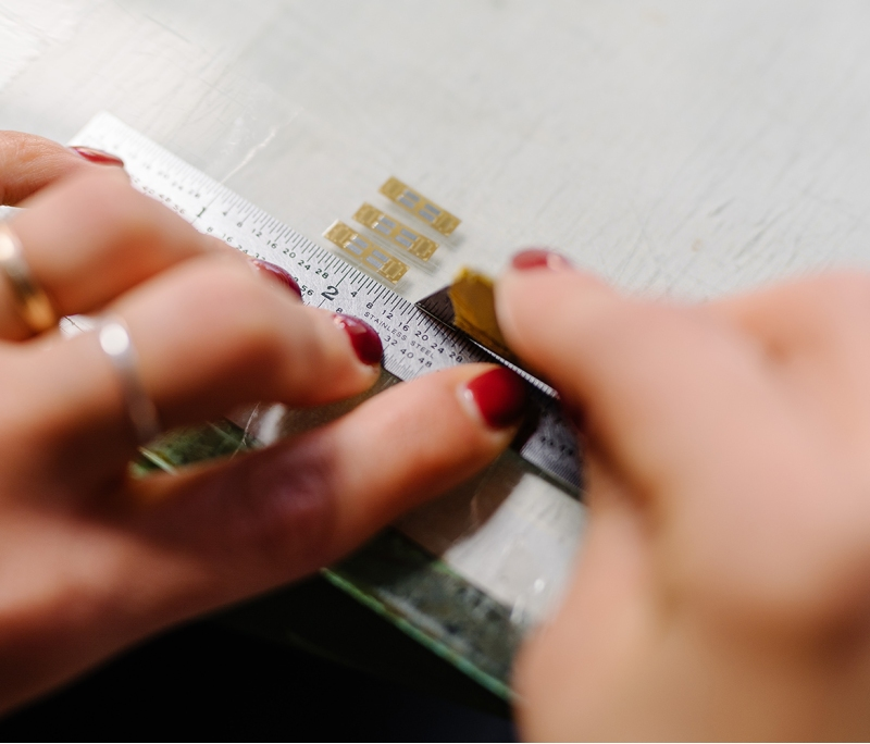 现在,称重传感器生产进入了最精密的工序。在这里,应变计由熟练的专业技术工人进行挑选、定位和粘贴。