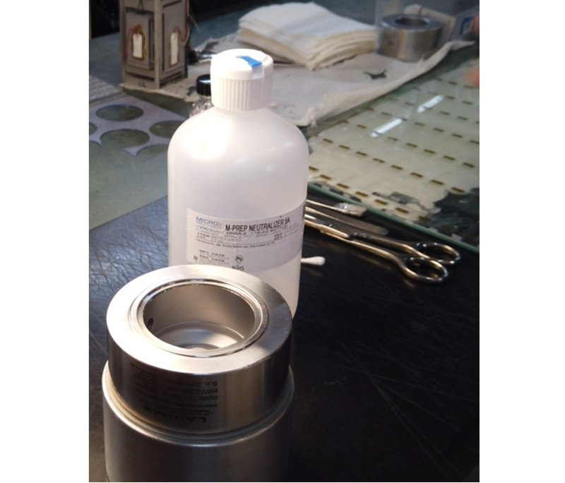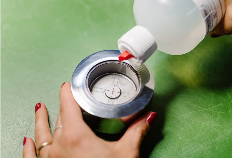 中和剂在清洗剂之后使用,有助于确保称重传感器完全清洁:如果清洗剂有效,中和剂液滴会立即在应变槽表面蔓延。