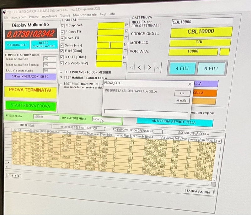 操作者将指令发送给仓库,需要特别注意的是,所发送的序列号应与刚刚测试过的称重传感器上的序列号相同。