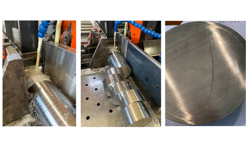 将棒材切割成圆柱体,然后逐个检查,确保没有 “裂缝”。