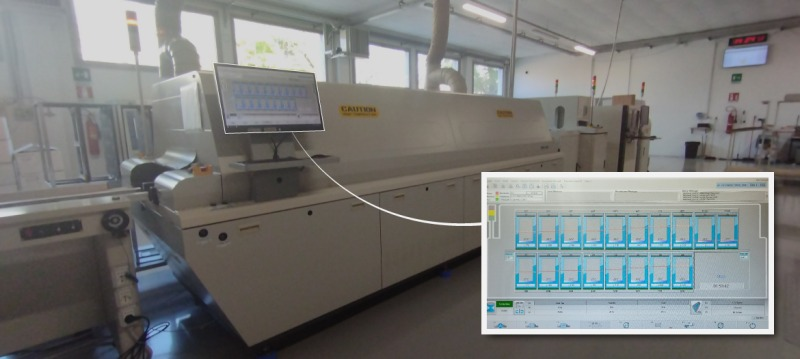 ![]() 回流炉配有8+8个加热区+2个冷却区。 |