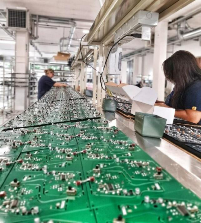 经3D光学检测确认为完美的半成品电路板将进入人工组装流程。
