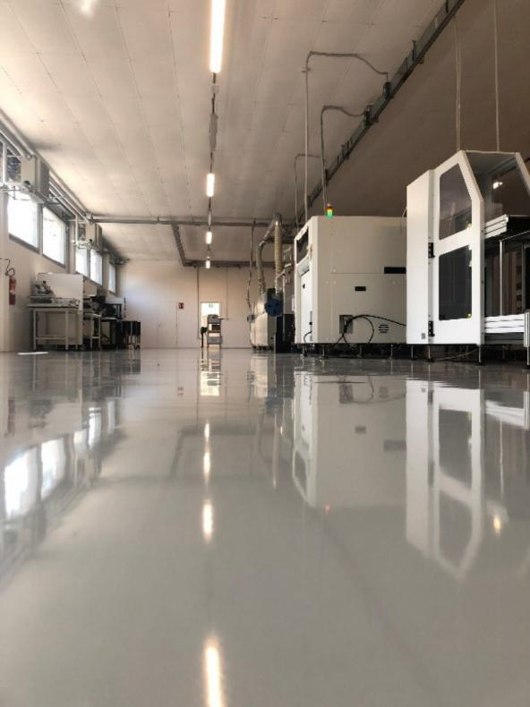 为了避免潜在的损害,生产部门的地板是防静电的:地板上完全覆盖着一种特殊的树脂,其中混掺着具有导电特性的碳纤维,树脂地板里沉积有与电气系统接地相连的铜网。
